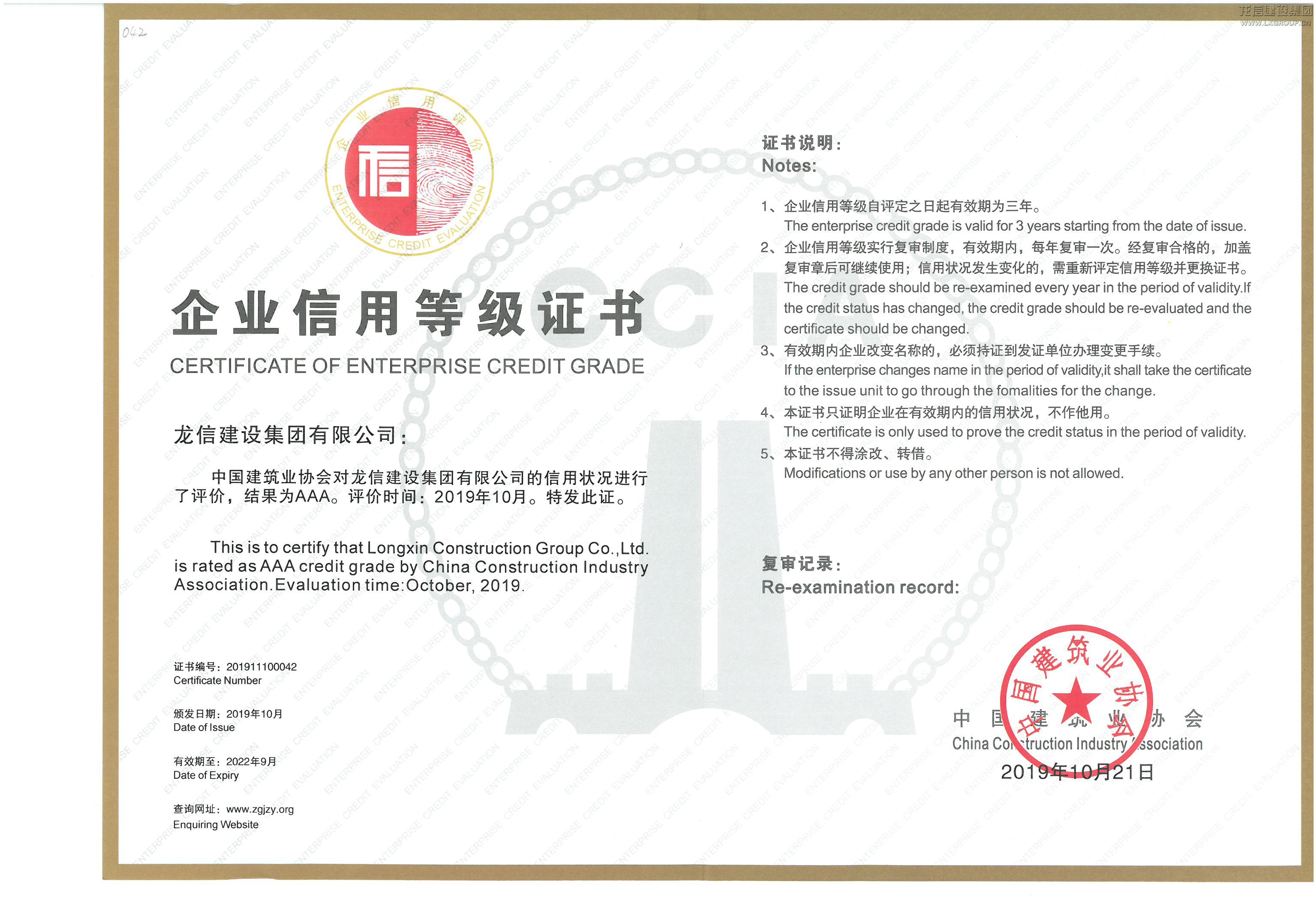 中國建筑業(yè)協(xié)會企業(yè)信用等級AAA級