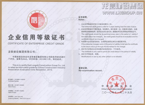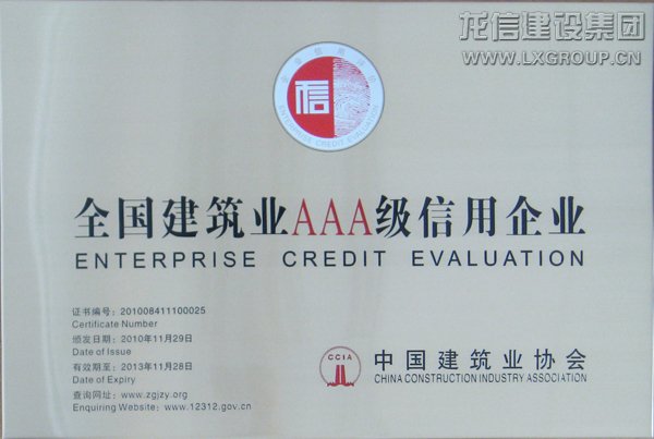 2011117 日,全國建筑業(yè)第二批AAA信用企業(yè)發(fā)布會,在北京科技會堂隆重舉行,建設(shè)部市場司、質(zhì)量司、商務(wù)部、國資委、建筑業(yè)協(xié)會相關(guān)領(lǐng)導(dǎo)出席發(fā)布會。集團公司憑借多年來誠實守信的經(jīng)營,獲得這一榮譽。建筑業(yè)協(xié)會秘書長吳濤向公司授牌。