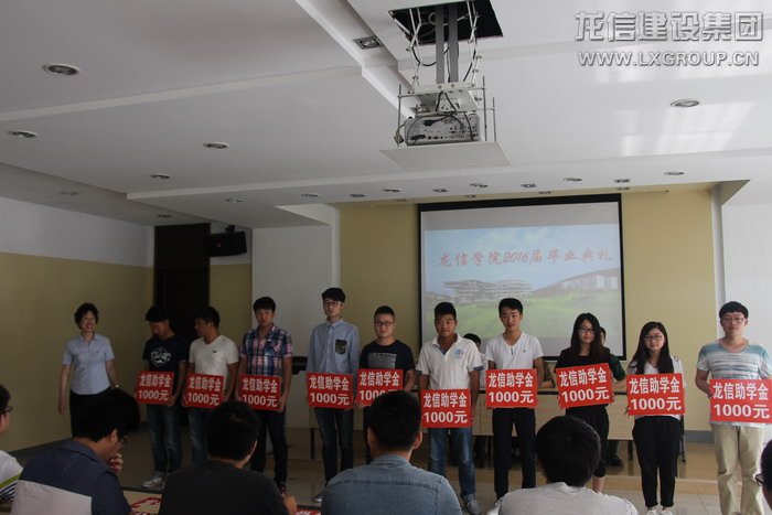 首先,卞勤華主席宣讀了龍信集團獎學金、助學金表彰文件,黃麗英為孫曉東等10名龍信獎學金獲得者和靳招利等10名龍信助學金獲得者頒獎。孫校長和卞主席為畢業(yè)生代表頒發(fā)畢業(yè)證書。