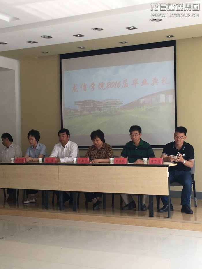 2016年6月7日上午,龍信學院“2+1”模式第二期畢業(yè)典禮在江蘇建筑職業(yè)技術(shù)學院利亞樓報告廳舉行。集團公司工會主席卞勤華、人力資源部黃麗英、江蘇建院校長孫進、建工學院陳年和院長、黨委書記黃國斌等領導和58名2016屆龍信學院畢業(yè)生參加典禮。