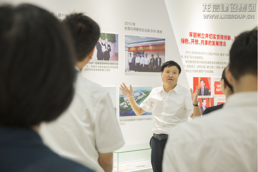 葛志娟一行實地參觀了龍信館,聽取陳祖新董事長介紹公司產(chǎn)業(yè)工人隊伍建設(shè)改革的相關(guān)舉措和成效。為適應(yīng)建筑產(chǎn)業(yè)現(xiàn)代化發(fā)展,龍信集團依托江蘇省智慧工程技術(shù)研究中心、科研單位、高等院校、龍信班等全方面、多渠道培養(yǎng)專業(yè)技能人才,同時選拔項目一線員工赴日本鹿島學(xué)習(xí)裝配式建筑技術(shù),大力提升公司產(chǎn)業(yè)工人隊伍整體素質(zhì)。近年來,龍信集團積極選拔專業(yè)人才參與十三五課題研究、國家標準、行業(yè)標準編制,努力將科技成果轉(zhuǎn)化為生產(chǎn)力,不斷提升企業(yè)核心競爭力。