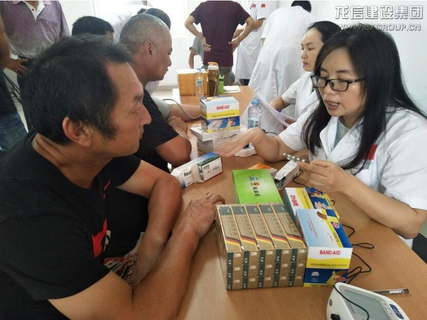下午三點(diǎn),援佛大項(xiàng)目營區(qū)布置就緒,“歡迎中國醫(yī)療隊(duì)來援佛大項(xiàng)目義診”的條幅分外醒目,7位中國醫(yī)療專家在梅立隊(duì)長的帶領(lǐng)下準(zhǔn)時(shí)就位,一一為前來義診的員工量血壓,解惑答疑,并為有需要的員工贈送中國藥品?,F(xiàn)場秩序井然,氣氛融洽,醫(yī)療專家耐心細(xì)致的工作態(tài)度,得到援外一線員工的一致好評,義診活動取得了很好的效果。