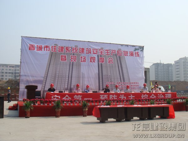 2011年6月29日上午,晉城市建筑施工安全生產(chǎn)應(yīng)急演練在我龍信建設(shè)集團(tuán)金城·蘭園項(xiàng)目部舉行!山西省安監(jiān)站副站長(zhǎng)宮守河、晉城市經(jīng)濟(jì)開(kāi)發(fā)區(qū)管委會(huì)主任原光輝、晉城市建筑安全監(jiān)督管理站站長(zhǎng)李乾坤等出席此次的觀摩會(huì)。項(xiàng)目演練圍繞高空墜落事故的救援救護(hù)、觸電事故的救援救護(hù)、火災(zāi)事故的救援救護(hù)三項(xiàng)預(yù)案展開(kāi),主要檢查預(yù)案與實(shí)踐的差距,普及教育安全常識(shí)和救護(hù)技能。省市各級(jí)領(lǐng)導(dǎo)及項(xiàng)目部管理人員分別在安全生產(chǎn)橫幅上簽名,以承諾個(gè)人安全責(zé)任!