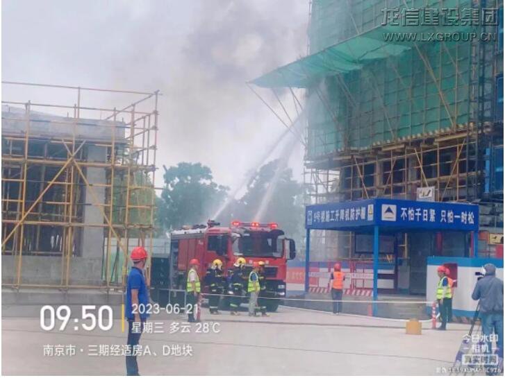 為保證演練的實(shí)戰(zhàn)性和可視性,本次演練采取了實(shí)戰(zhàn)演練的方式現(xiàn)場直播,模擬了南京生態(tài)科技島三期經(jīng)濟(jì)適用住房A、D地塊項(xiàng)目施工現(xiàn)場因焊接作業(yè)未使用接火斗,點(diǎn)燃易燃材料發(fā)生火災(zāi)事故。模擬事故發(fā)生后,項(xiàng)目部立即啟動應(yīng)急救援預(yù)案,項(xiàng)目部組織應(yīng)急救援組、安全保衛(wèi)組、醫(yī)療救護(hù)組、后勤保障組第一時(shí)間迅速趕到事故現(xiàn)場,拉起警戒線、有序疏散人員開展火災(zāi)自救,并使用干粉滅火器及現(xiàn)場消防用水控制火勢。由于火勢較大,安全保衛(wèi)組隨即聯(lián)系119,119到達(dá)現(xiàn)場后在安全保衛(wèi)組的引導(dǎo)下進(jìn)行救火,火情及時(shí)得到控制。整個(gè)演練過程分工明確、有條不紊,應(yīng)急方案執(zhí)行有力、事故處置得當(dāng)。