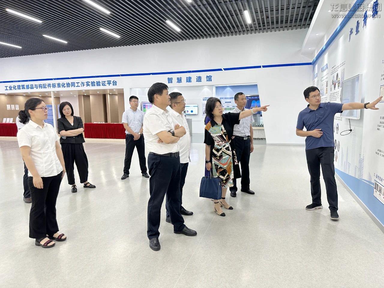 張姿部長(zhǎng)一行在陳祖新董事長(zhǎng)等人的陪同下參觀龍信館、產(chǎn)改館、數(shù)字監(jiān)控中心,詳盡了解集團(tuán)65年發(fā)展歷程、建筑產(chǎn)業(yè)化及產(chǎn)業(yè)工人隊(duì)伍建設(shè)、信息化應(yīng)用等情況。
