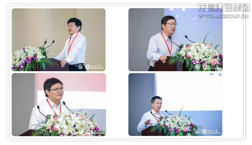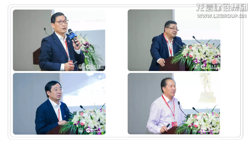 左起:華東建筑集團股份有限公司總裁張樺先生,申銀萬國證券研究所首席市場專家桂浩明先生,中鐵四局集團有限公司總經(jīng)理王傳霖先生,南通四建集團有限公司終身名譽董事長耿裕華先生