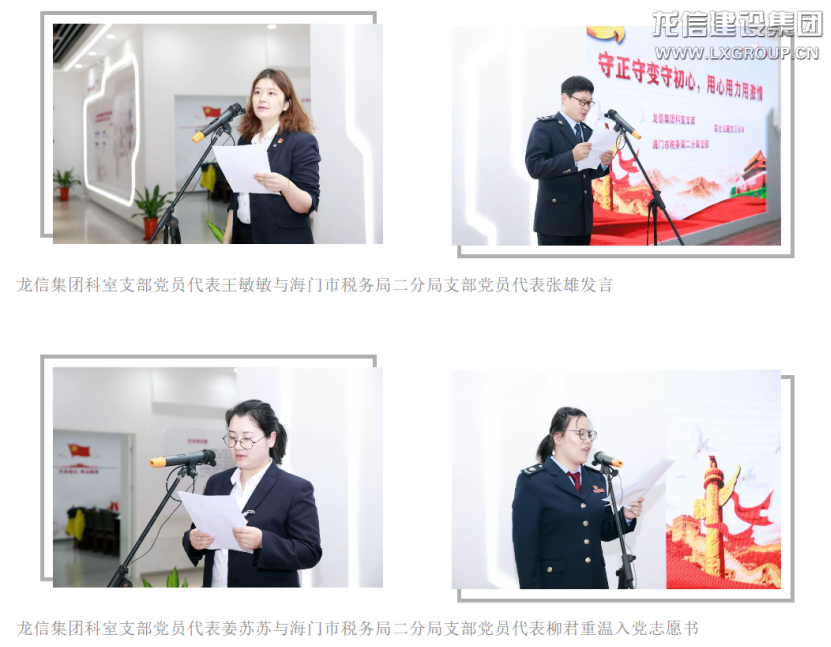 本次黨日活動(dòng)以“守正守變守初心、用心用力用激情”為主題,黨員們通過(guò)參觀龍信館,進(jìn)一步了解企業(yè)在黨的引領(lǐng)下走過(guò)的崢嶸歲月。隨后,龍信集團(tuán)與海門(mén)市稅務(wù)局二分局支部共同簽署“黨建結(jié)對(duì)”協(xié)議書(shū),在簽約儀式上,雙方一致認(rèn)為通過(guò)稅企共建,有效建立雙方互幫互助、發(fā)展共贏的長(zhǎng)效機(jī)制,實(shí)現(xiàn)雙方黨建資源共享、優(yōu)勢(shì)互補(bǔ),不斷增強(qiáng)基層黨建組織組織力。