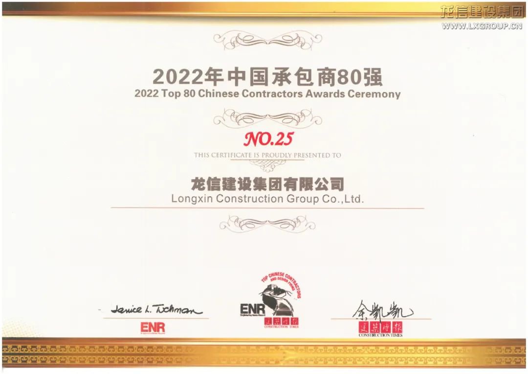 美國《工程新聞記錄》(ENR)和中國《建筑時報》共同發(fā)布2022年度“中國承包商80強(qiáng)和工程設(shè)計企業(yè)60強(qiáng)”排名。龍信建設(shè)集團(tuán)榮列2022年“中國承包商80強(qiáng)”第25位,這已是我集團(tuán)連續(xù)第14年入圍該榜單。